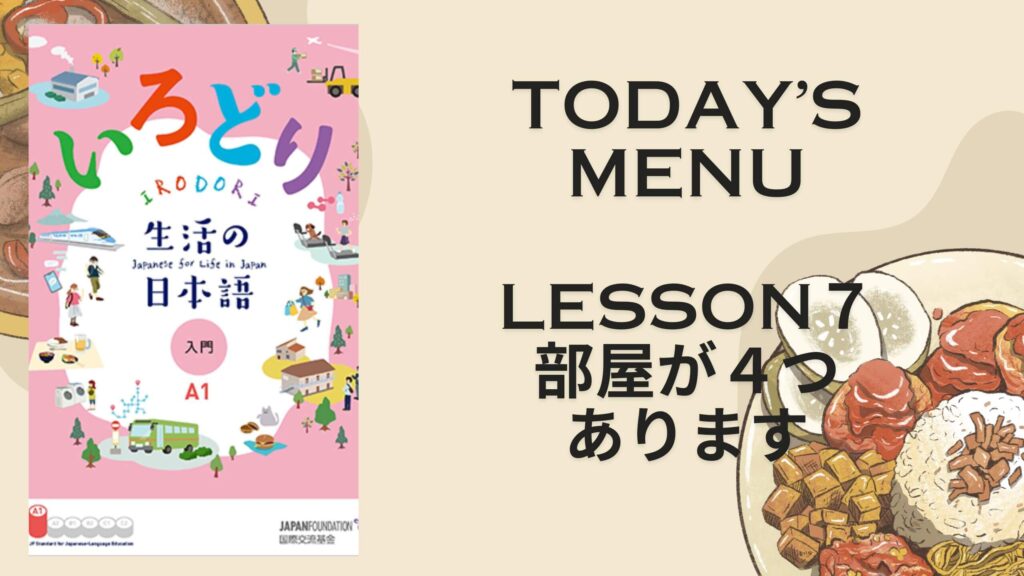 AIUEO JAPANESE LEARNING "IRODORI"LESSON 7 部屋が4つあります There are 4 rooms 2024年6月10日 最終更新日時 : 2024年6月10日 AIUEO JAPANESE Follow me! Bluesky