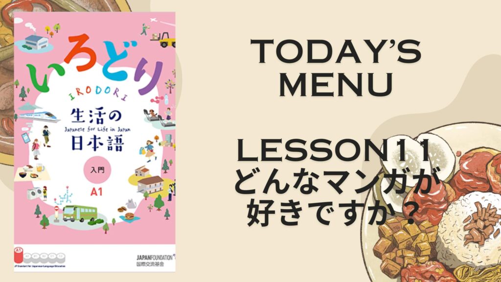 AIUEO JAPANESE LEARNING "IRODORI"LESSON 11 どんなマンガが好きですか?What kind of manga do you like? 2024年6月12日 最終更新日時 : 2024年6月12日 AIUEO JAPANESE Follow me! Bluesky