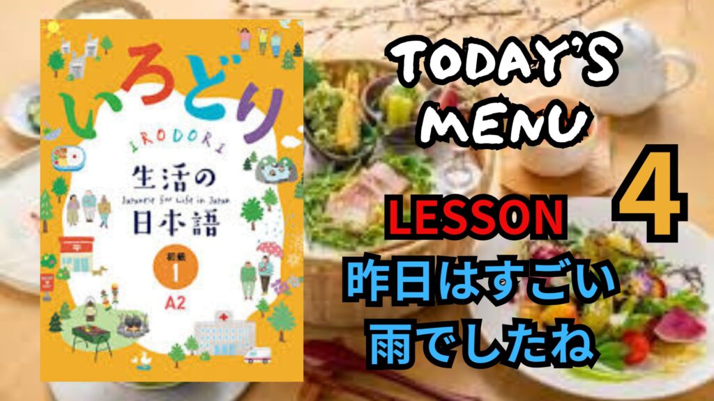 AIUEO EASY JAPANESE LEARNING "IRODORI"LESSON 4 昨日はすごい雨でしたね 2024年6月18日 最終更新日時 : 2024年6月18日 AIUEO JAPANESE Follow me! Bluesky