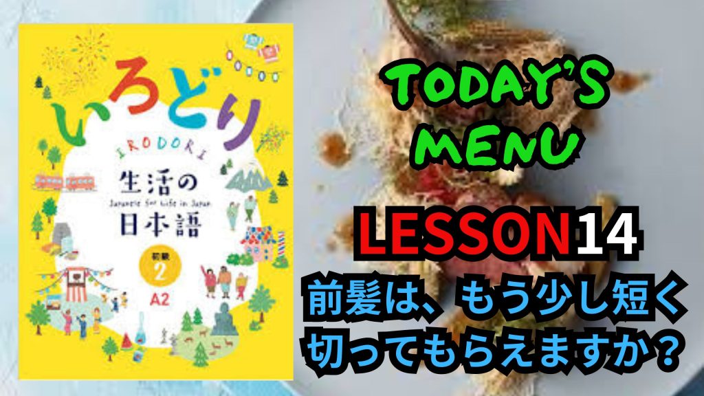 AIUEO EASY JAPANESE CLASS "IRODORI"A2 BEGINNER2 LESSON14 前髪は、もう少し短く切ってもらえますか? 2024年7月1日 最終更新日時 : 2024年7月1日 AIUEO JAPANESE Follow me! Bluesky