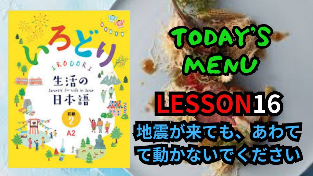 AIUEO EASY JAPANESE CLASS "IRODORI"A2 BEGINNER2 LESSON16 地震があっても、あわてて動かないでください