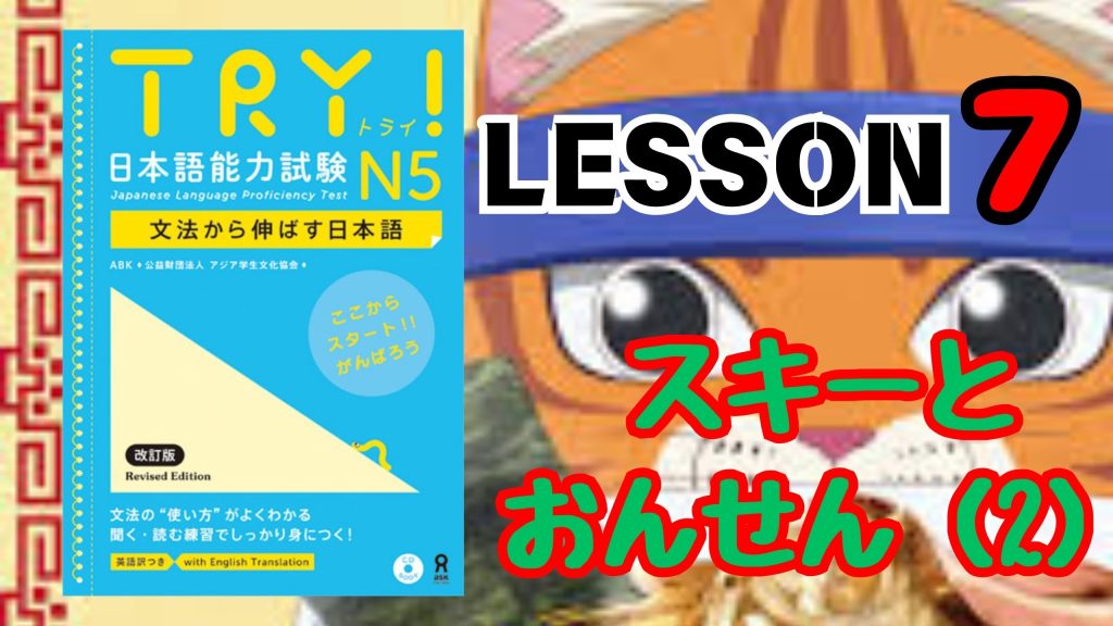AIUEO EASY JAPANESE LESSONS JLPT ”TRY N5” Lesson7-2 スキーとおんせん2 2024年8月23日 最終更新日時 : 2024年8月23日 AIUEO JAPANESE Follow me! Bluesky