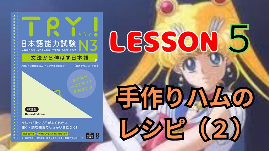 AIUEO EASY JAPANESE LESSONS JLPT "TRY N3" Lesson 5-2 手作りハムのレシピ2 2024年8月25日 最終更新日時 : 2024年8月25日 AIUEO JAPANESE Follow me! Bluesky