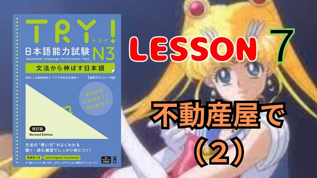 AIUEO EASY JAPANESE LESSONS JLPT "TRY N3" Lesson 7-2 不動産屋で 2 2024年8月27日 最終更新日時 : 2024年8月27日 AIUEO JAPANESE Follow me! Bluesky