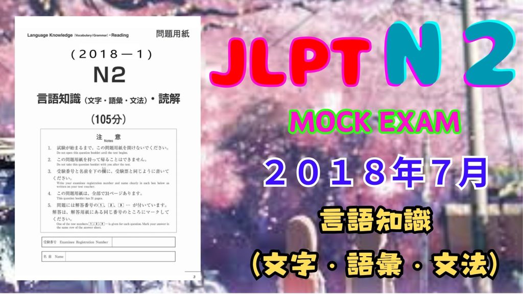 AIUEO EASY JAPANESE LESSONS JLPT N2 Mock Exam 7.2018 Language Knowledge 2024年9月24日 最終更新日時 : 2024年9月24日 AIUEO JAPANESE Follow me! Bluesky